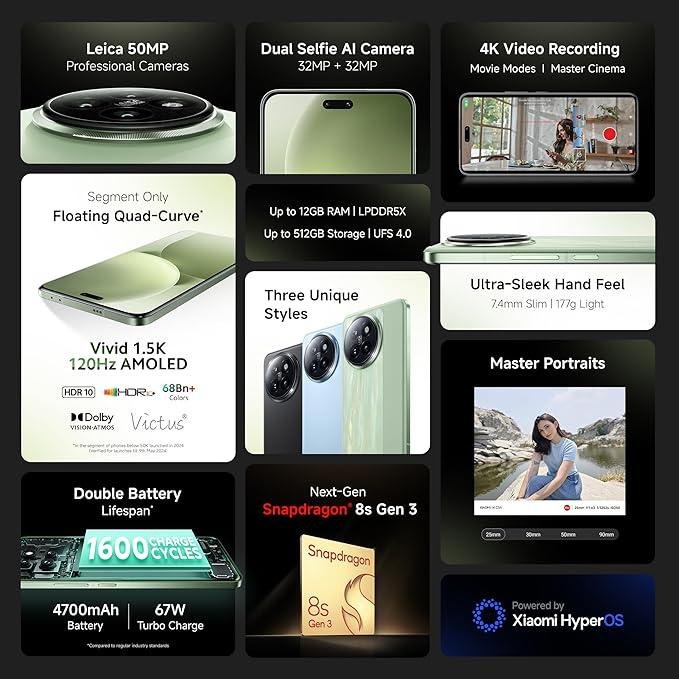 XIAOMI 14 Civi | 50 MP Leica Triple Camera| SD 8s Gen 3 | 1.5K Quad Curved AMOLED HyperOS